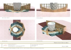 Il progetto del fonte battesimale è stato concepito per integrarsi armoniosamente con il significato spirituale e liturgico del rito del Battesimo, sia per immersione che per infusione.